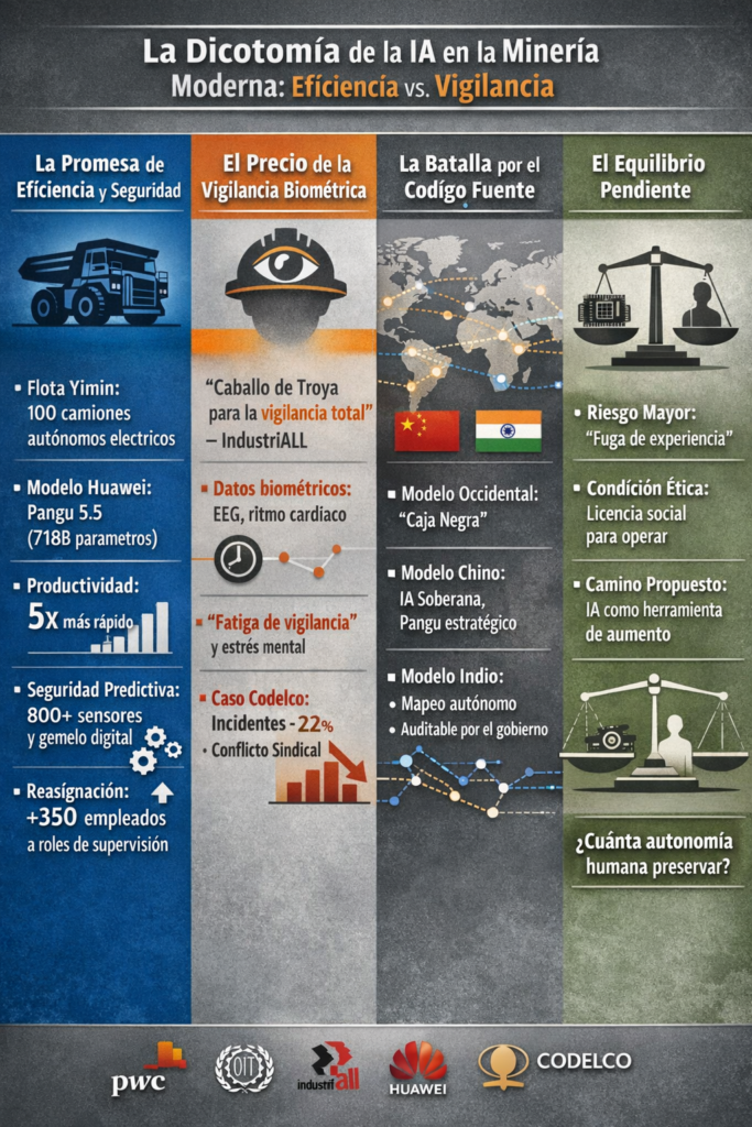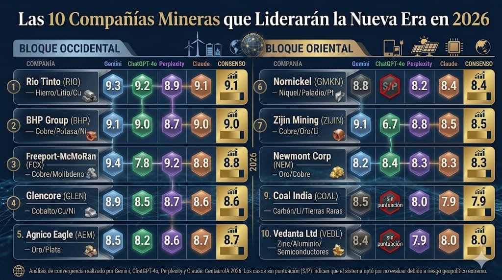 La minería dejó de ser industria para convertirse en geopolítica. Cuatro sistemas de inteligencia artificial —Gemini, ChatGPT-4o, Perplexity y Claude— analizaron las diez compañías mineras que definirán la transición energética y tecnológica global. El resultado revela un mundo partido en dos bloques con lógicas opuestas, un subsuelo que vale más que cualquier bolsa de valores y una advertencia que los propios modelos que escribieron este análisis no pueden ignorar: los minerales que alimentan la inteligencia artificial son finitos. La confianza, no.
